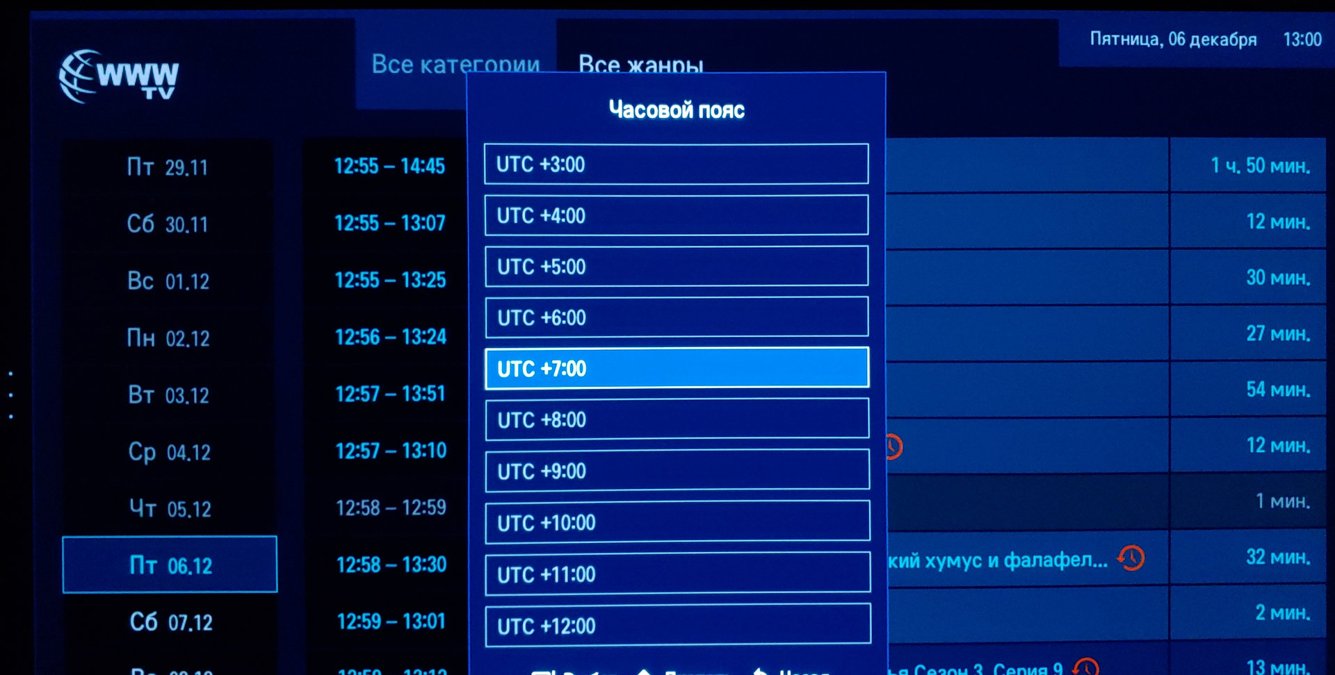 FalkreeБесплатный плейлист ZABAVA попробуйте найти в поисковике. Смотрите на дату обновления, за 20-22 года половина каналов не работает. Должен быть конец '22 или более свежий. В нём все федеральные каналы прописаны по поясам: +1, +2, +3, +4 и т.д. Смотреть нужно через любой плеер для webOS, поддерживающий внешние плейлисты.
