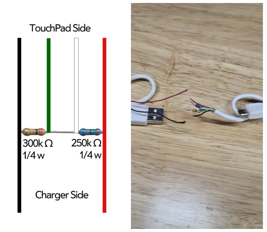Тем не менее, вы можете "обмануть" TouchPad, чтобы он заряжался нормально и не выдавал это сообщение, создав свой собственный кабель micro USB или же USB Type C, если вы уже модифицировали свой TouchPad.