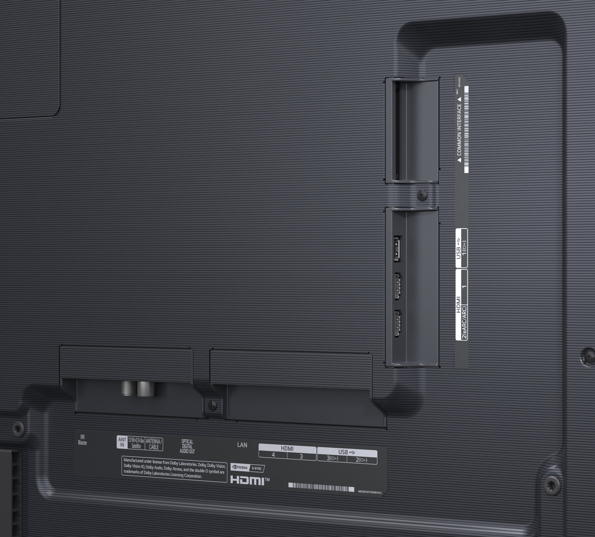 На боковой панели моделей 55G5 и 55G5 расположены два входа HDMI 2.1 (один из которых совместим с ARC и eARC), один порт USB (версии 2.0) и слотом условного доступа CI+.