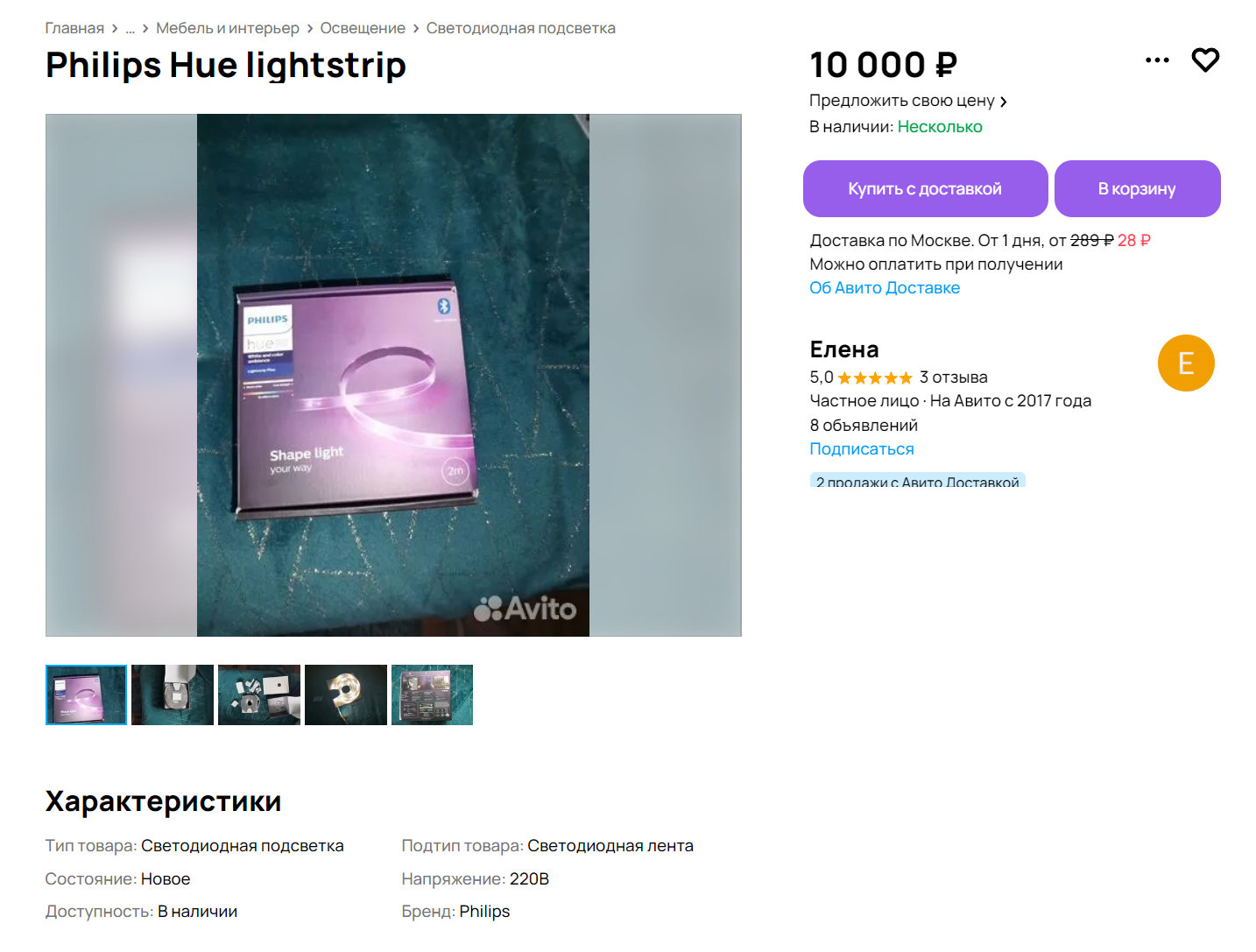 Отдельно Philips Hue Lightstrip 5 метров нашлась у этих продавцов: