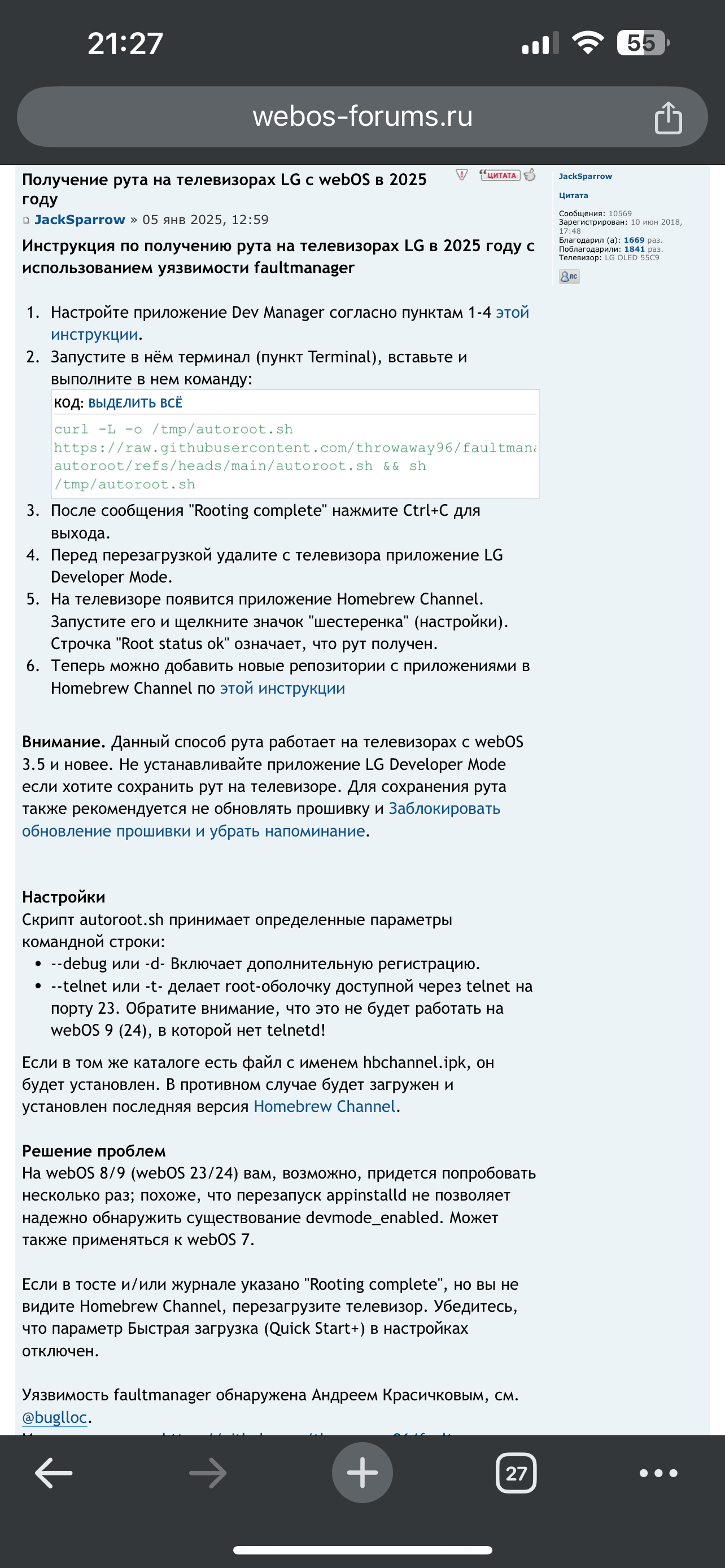 Внимание. Данный способ рута работает на телевизорах с webOS 3.5 и новее.