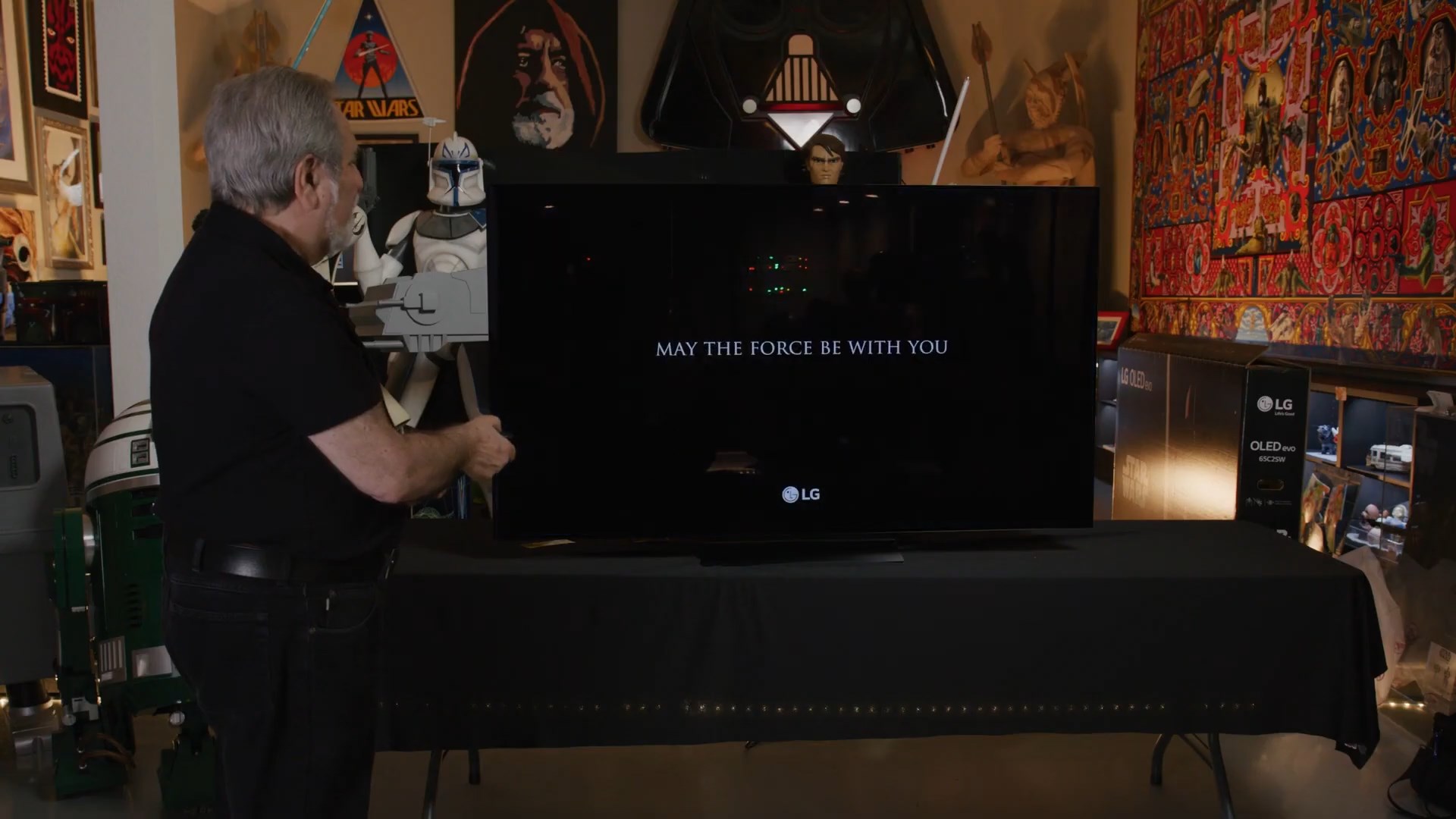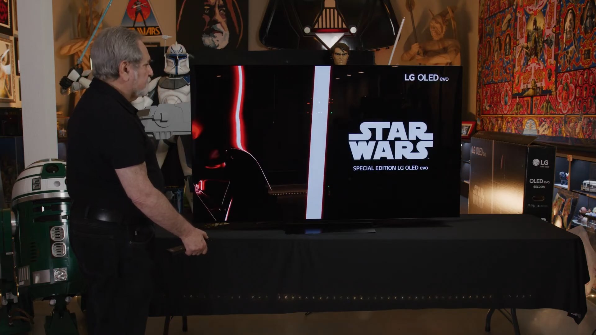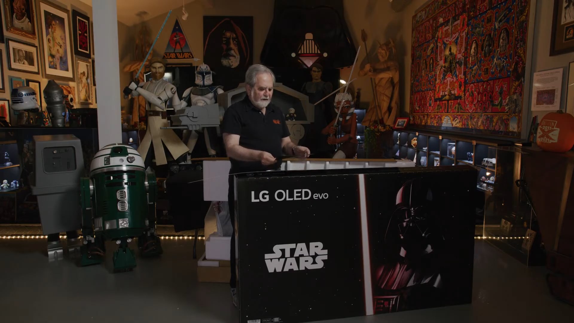 Фанаты оценят, распаковка специальной версии телевизора LG OLED C2 Star Wars Edition крупнейшим в мире коллекционером атрибутики "Звездных войн" Стивом Сансвитом: