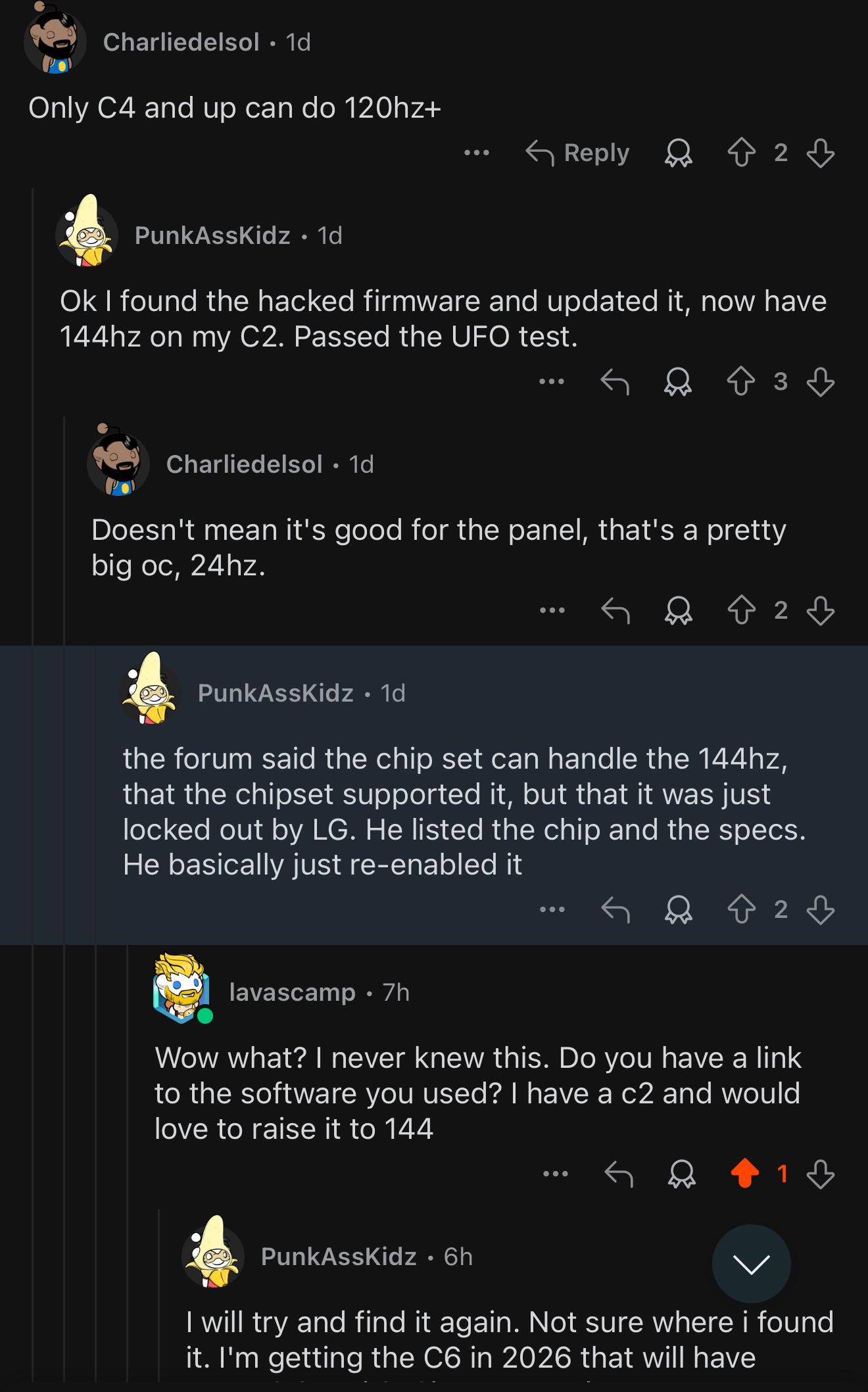 На reddit пишут, что кому-то удалось взломать (?? ) прошивку LG C2 и "разогнать" частоту матрицы до 144 Гц :shock:
