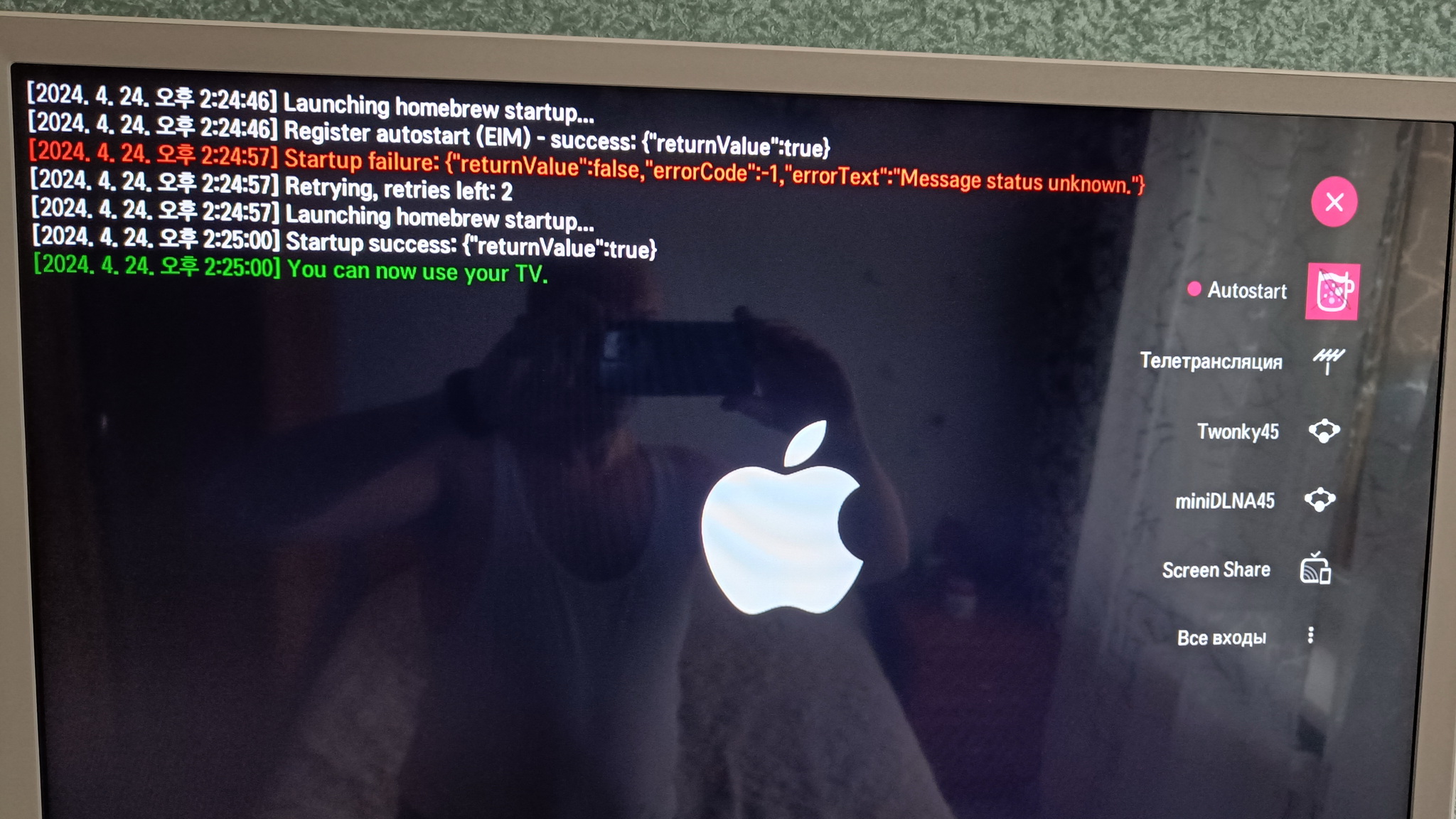 Только при запуске кружки - или (так и сделал) прогой org.webosbrew.autostart_0.0.2_all.ipk