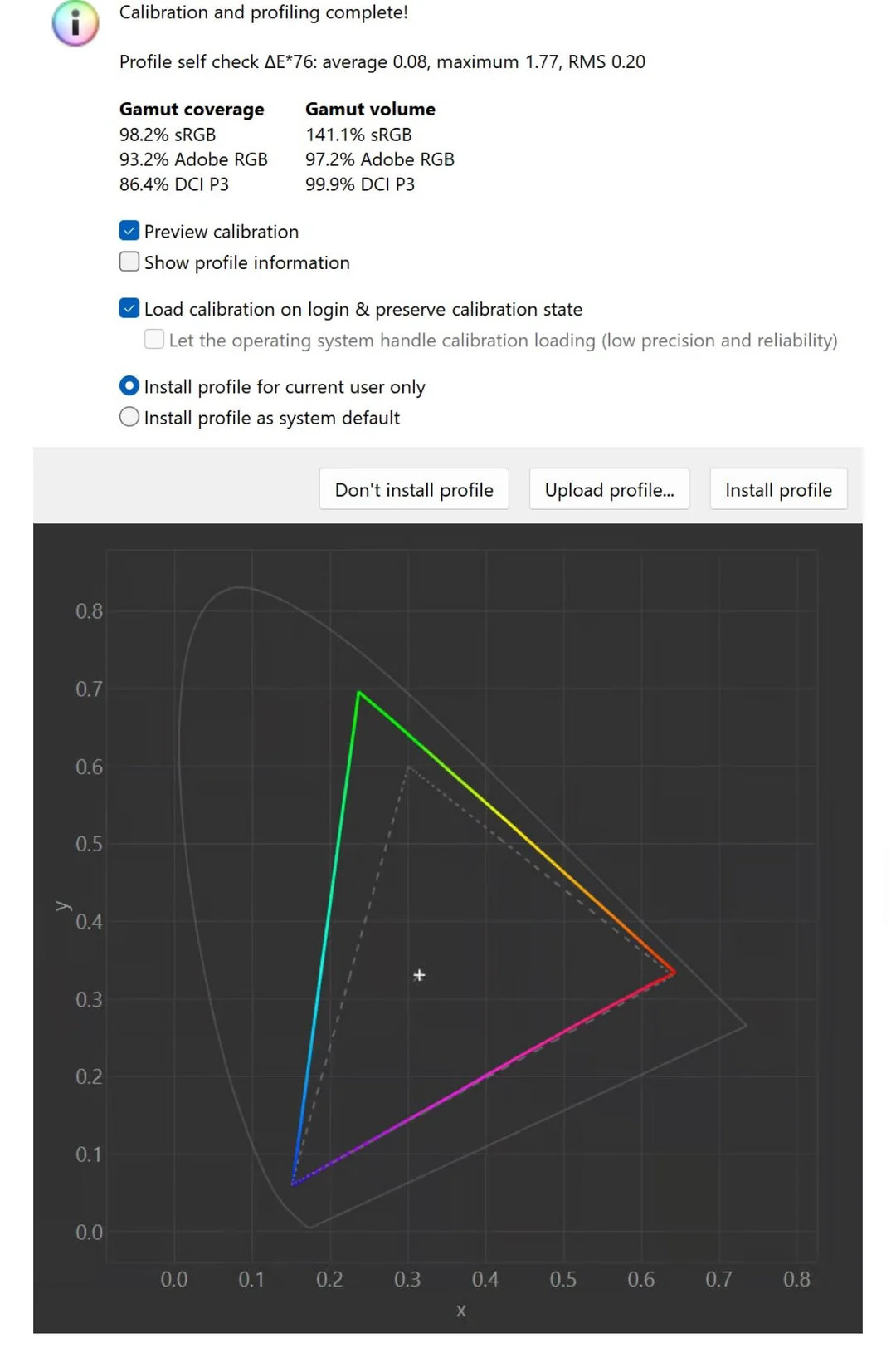 - Режим "Cinema" показал лучшую точность (?E 1.09).