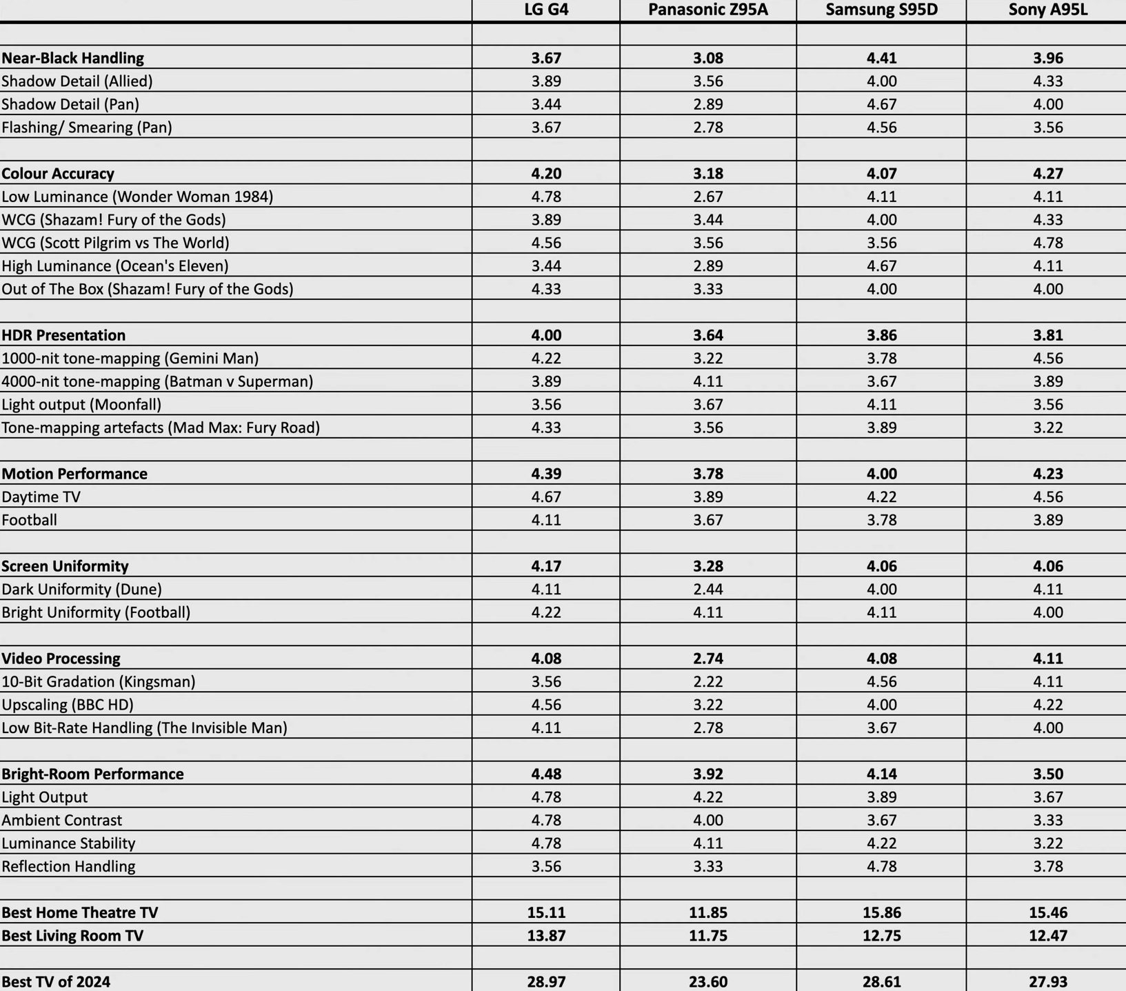 LG G4, Panasonic Z95A, Samsung S95D и Sony A95L.
