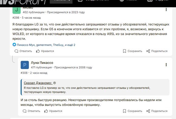 ma1746 писал(а):Я давний фанат LG – у меня были практически все их OLED-телевизоры, начиная с B6. Сейчас в домашнем кинотеатре стоит G4, в гостиной раньше был G3 (его заменил на 77-дюймовый G5), а в спальне – Samsung S95D.