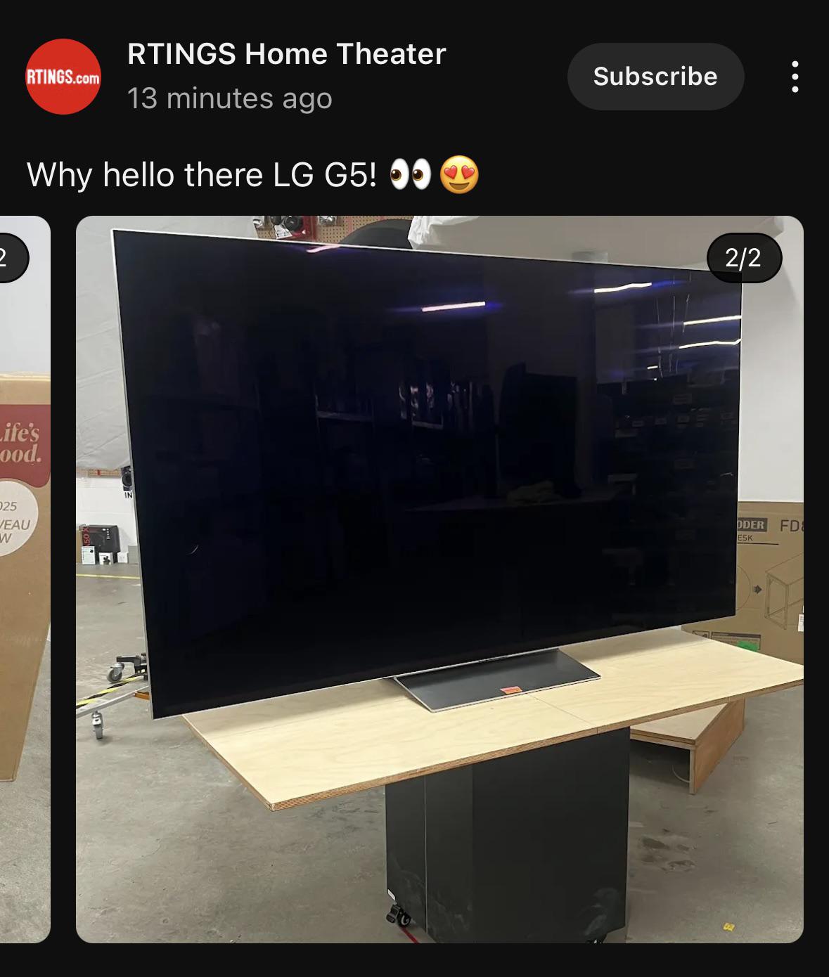 Адам_РТИНГС писал(а):В отличие от большинства обозревателей, таких как Брайан, Fomo и т.д., мы покупаем каждый телевизор, который рассматриваем, поэтому нам требуется немного больше времени, чтобы получить его, так как нам не присылают образцы для обзора. Тем не менее, мы должны получить G5 в ближайшие несколько дней.