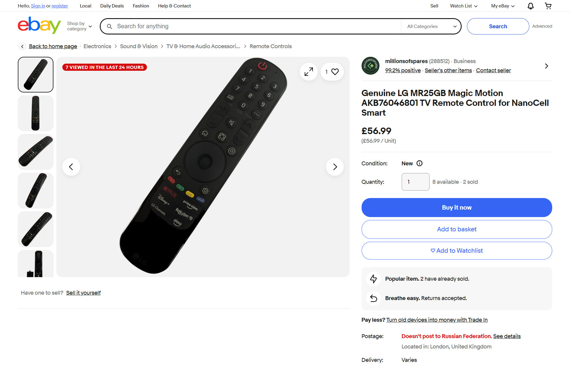 В Великобритании пульт Magic Remote 2025 года именно такой: