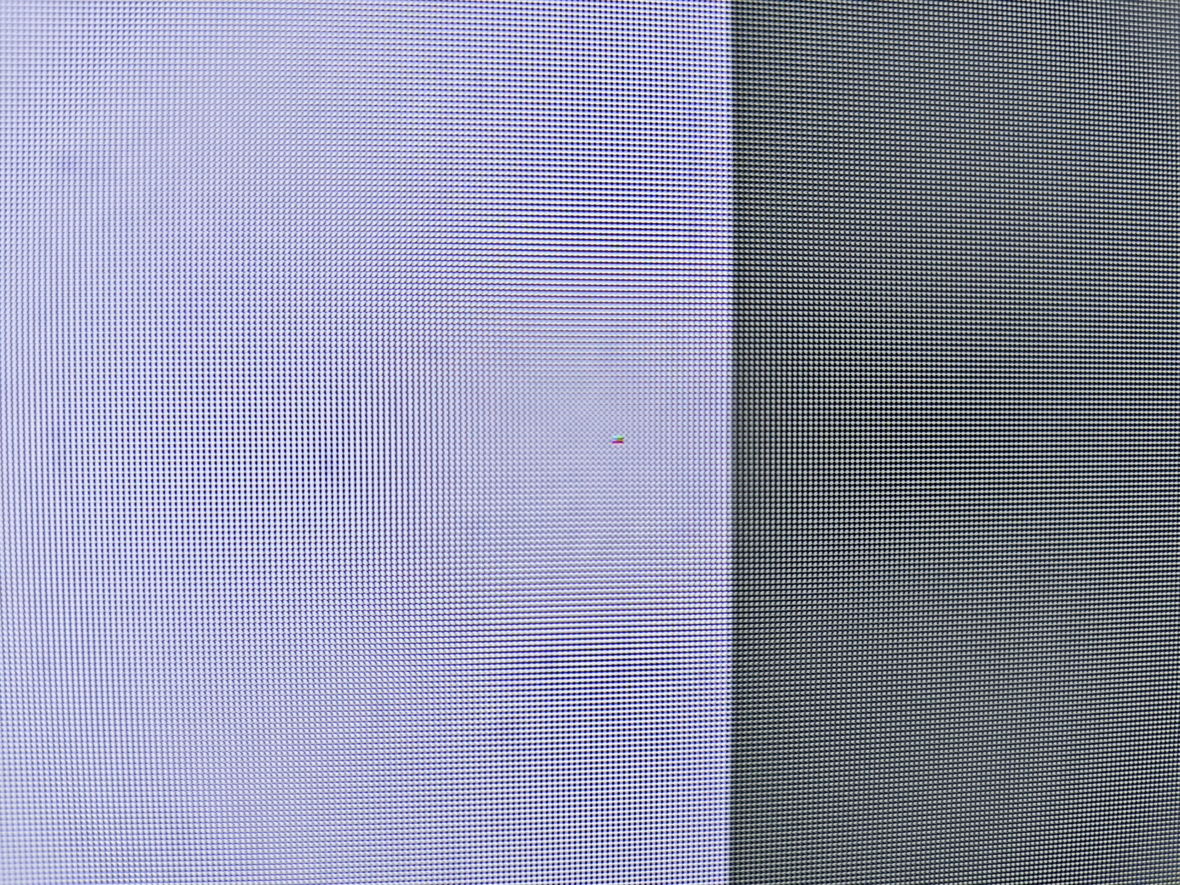 Так вот, тот что первый работает везде, но не светиться на синем и от части работает на фиолетовом, а так же выдаёт светло белый на сером. Когда появился нижний я запустил проверку пикселей, теперь он светит наполовину, если смотреть на него, будет виден белый и остальные цвета пикселей, тоесть работает он некорректно (забыл сказать, тот он не работал только на белом)
