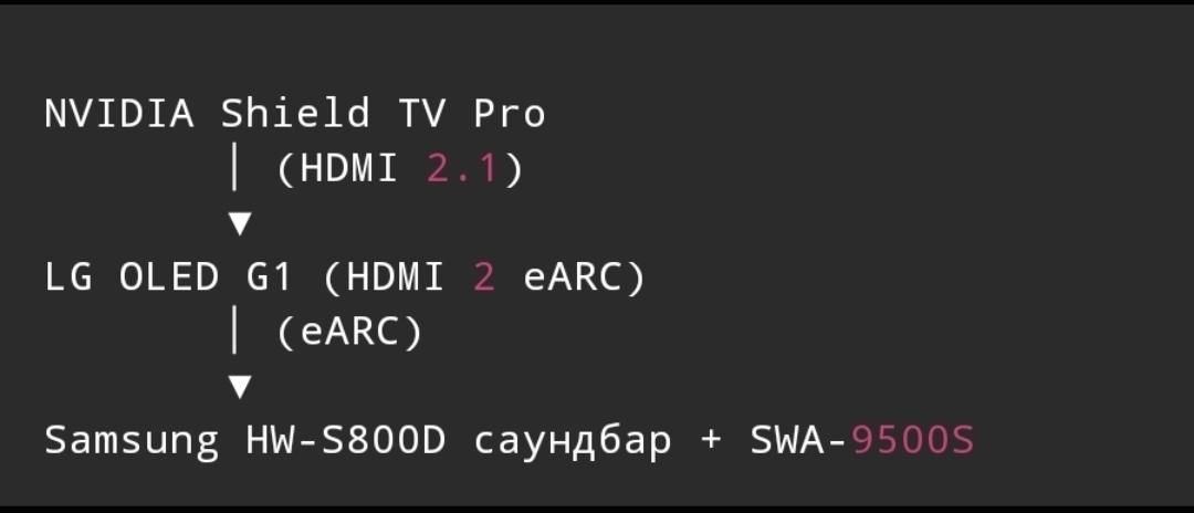, и убедиться, что используете качественный HDMI 2.1 кабель.  А, и да, для озвучивания на баре аудиопотоков, поступающих с цифрового HDMI-аудиовыхода ТВ, соедините HDMI (ARC)  ТВ с HDMI OUT саундбара = + еще 1 HDMI-кабель