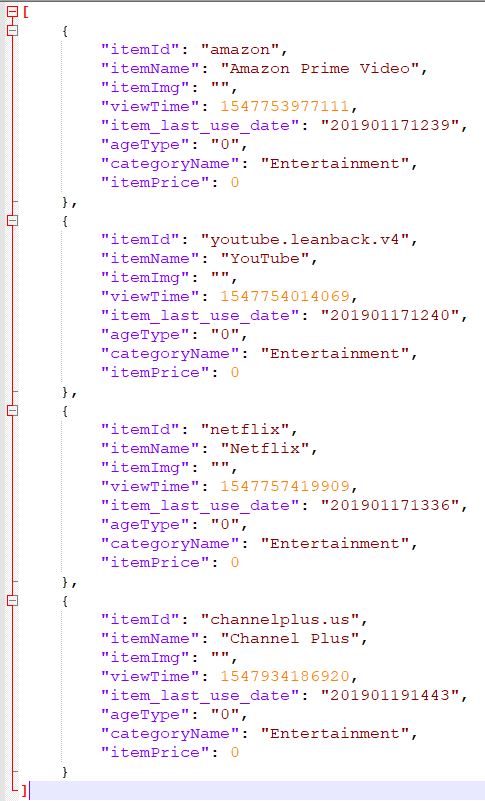 Файл "/var/luna/data/downloadhistory.db" содержит информацию об установленных приложениях. Для каждой установки доступен встроенный файл JSON. Он содержит информацию о конкретном приложении, включая временные метки. В этом наборе данных установлены различные приложения, такие как Netflix, Amazon Prime Video, Vudu, ChannelPlus, Sling и YouTube.
