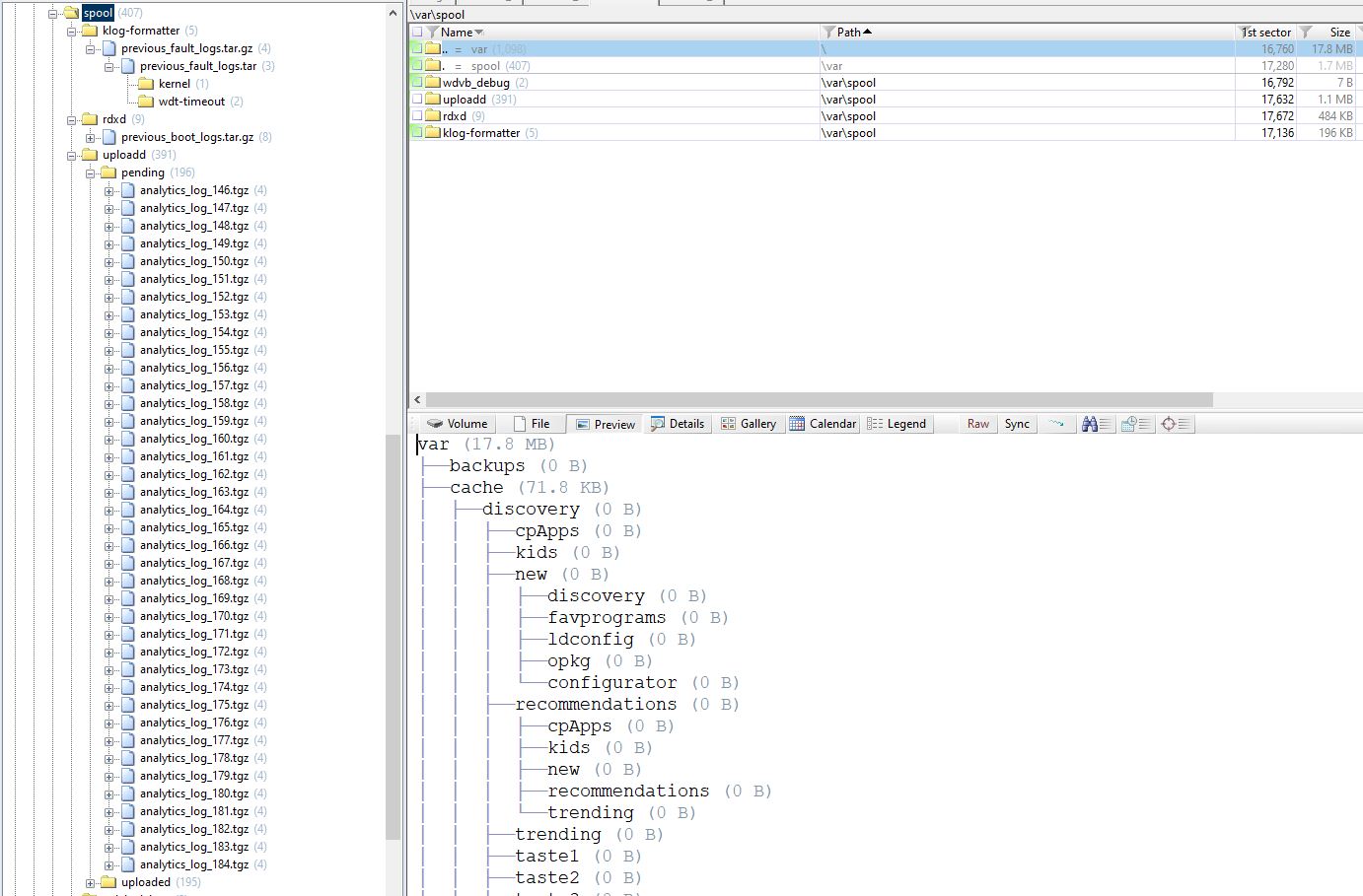 В общей сложности я нашёл шесть разделов SquashFS, извлечённых с помощью binwalk, и четыре раздела EXT4, извлечённых с помощью MobileRevelator и TestDisk: раздел 0 (/mnt/lg/uhdcp), раздел 1 (/var/db), раздел 2 (/mnt/lg/cmn_data) и раздел 3 (/media).