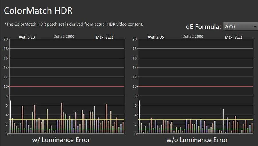 MLA. При этом средняя ошибка цветопередачи в режиме HDR (при MaxCLL = 1000; MaxFALL = 400 кд/м?) составила 3,1, что является очень хорошим результатом.