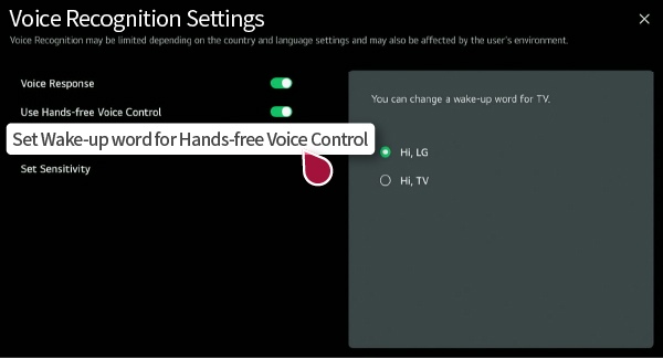 Изменение команды активации для голосового управления без пульта (с «Hi LG» на «Hi TV» и наоборот)Чтобы изменить команду активации голосового управления без пульта ДУ (с «Hi LG» на «Hi TV» или наоборот) на телевизоре LG, нужно выполнить определенные действия. Убедитесь, что телевизор подключен к интернету, так как это необходимо для работы функции. Нажмите кнопку "шестеренка" на пульте Magic Remote, а затем в правом верхнем углу экрана выберите пункт «Все настройки». В открывшемся полном меню настроек перейдите в раздел «Общие», далее выберите «Сервис AI», а затем - «Настройки распознавания голоса». В этом меню найдите опцию «Задайте фразу выхода ТВ из спящего режима» и выберите её. Здесь будет предложено два варианта: «Hi LG» и «Hi TV». Выберите ту команду, которая больше нравится. Телевизор может попросить вас произнести выбранную фразу несколько раз для лучшего распознавания вашего голоса - в этом случае просто следуйте инструкциям на экране.