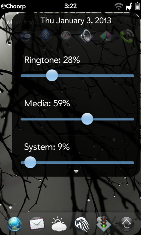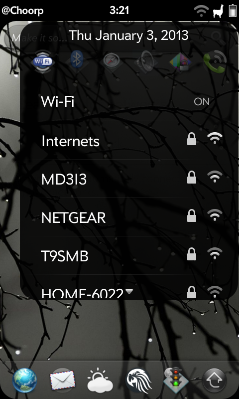 - Циклическое переключение Wifi: если тапнуть и удерживать строчку статуса Wifi, радио-модуль отключится в включится снова. Может быть полезно при проблемах с Wifi на Pre3.