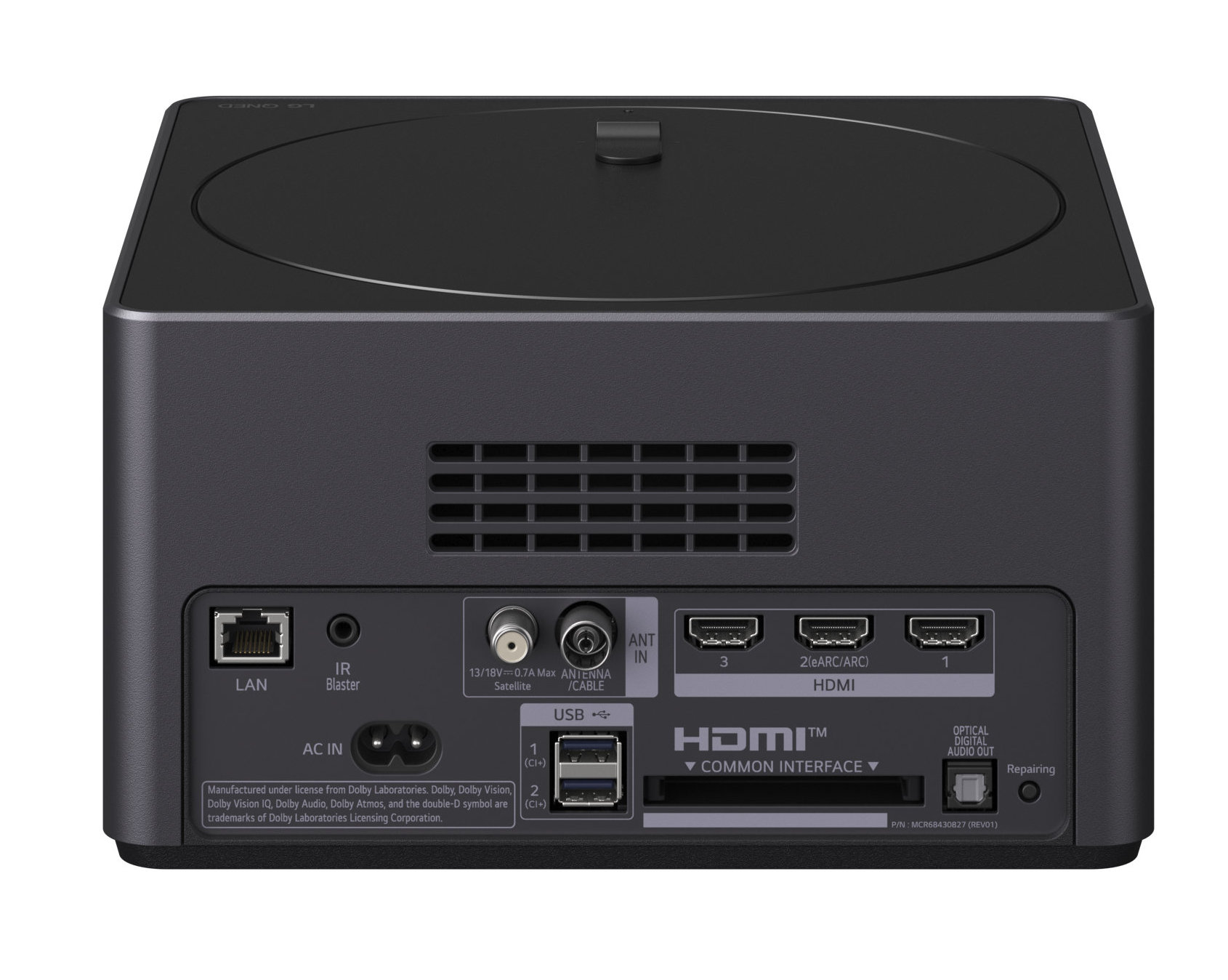 Блок Zero Connect оснащен тремя портами HDMI 2.1 (один из которых совместим с ARC и eARC), 2 антенными входами (для спутникового и кабельного/эфирного ТВ), двумя портами USB 2.0, одним портом LAN (со скоростью 100 Мбит/сек), портом ИК-передатчика и слот условного доступа CI+. Что касается аудио, то на этой же панели расположен только оптический аудиовыход, выход 3,5" на наушники/акустику отсутствует.