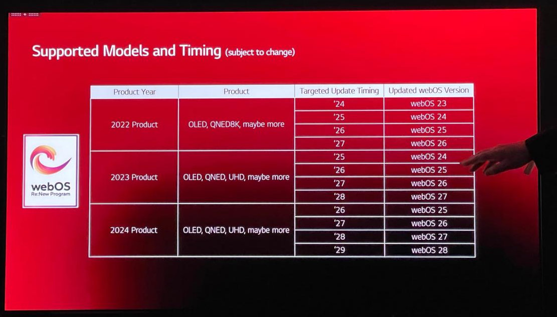 LG добавила, что модели 8K, выпущенные в 2022 году (в 2023 году LG не выпустила ни одной модели 8K), также получат обновление webOS, а другие неуказанные модели LCD получат его в будущем.
