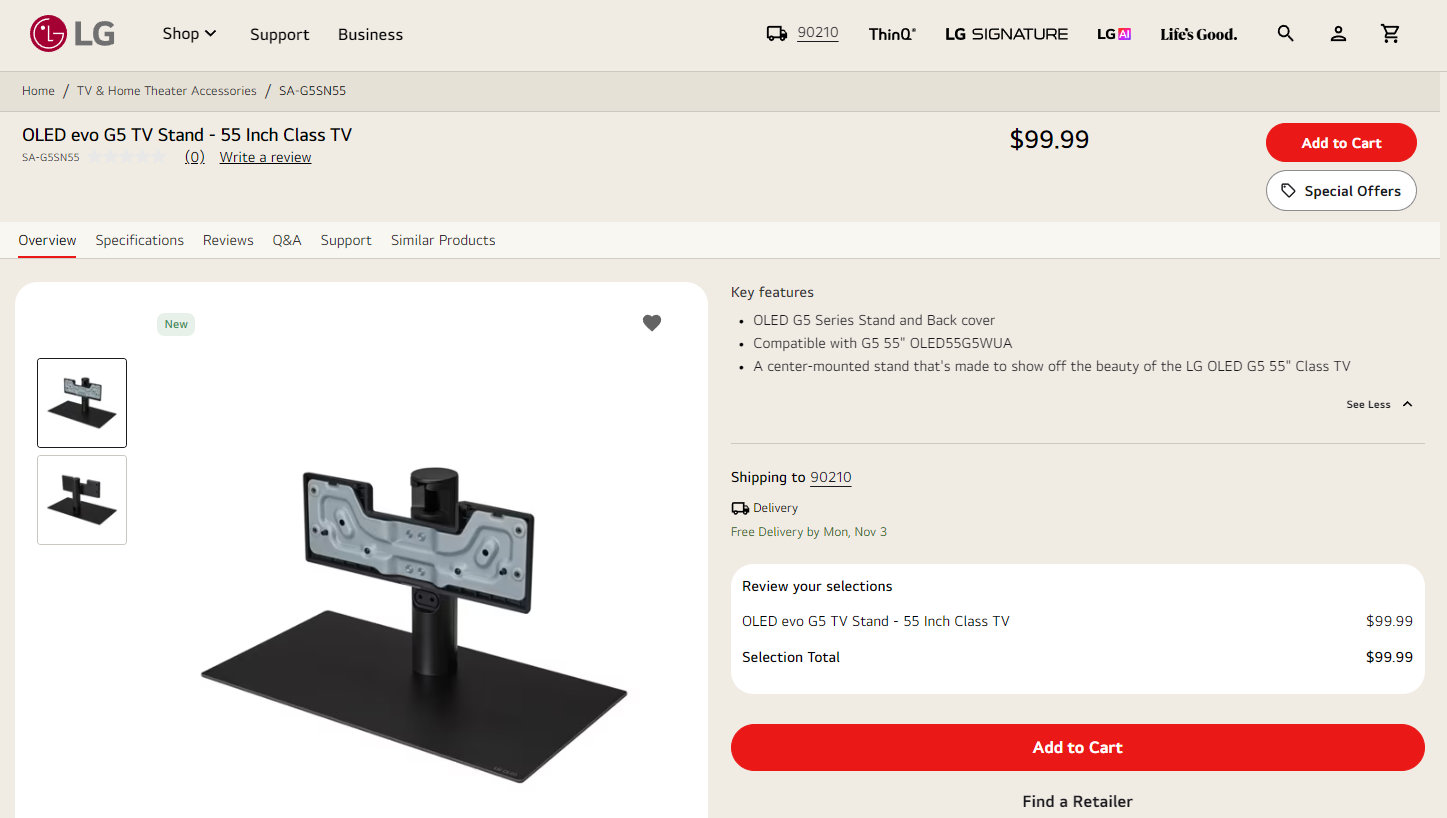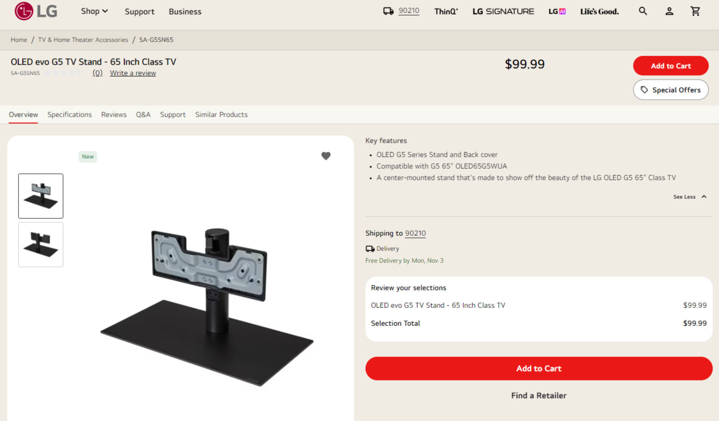 В США на сайте LG сейчас можно купить родные настольные подставки (с задней крышкой) для LG G5 в 55-й и 65-й диагонали. Цена всего 99,99 долларов.