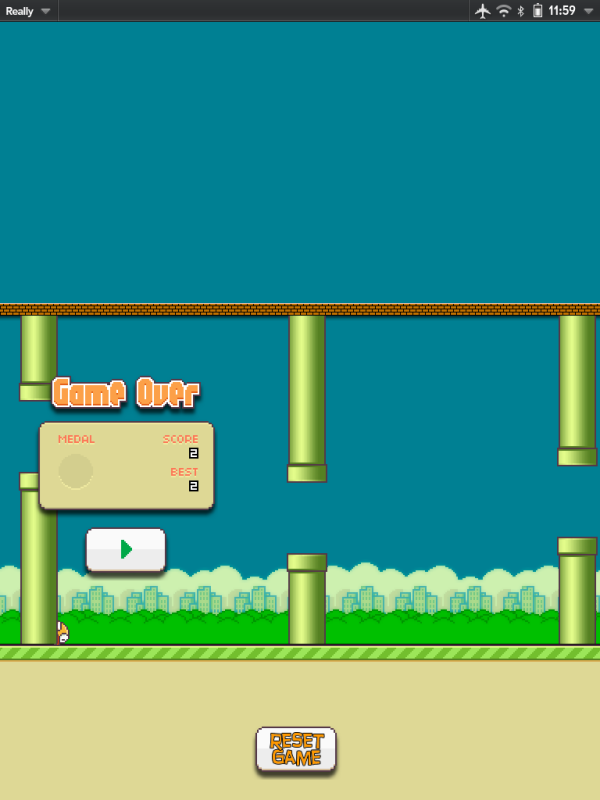 Описание: Версия популярной игры Flappy Bird для webOS.-Представляет собой скроллинговую мобильную игру с 2D графикой и в ретро стиле. Цель игры состоит в том, что нужно управлять непрерывно летящей вправо птицей, попутно уворачиваясь от препятствий в виде труб. При нажатии игроком на экран птица совершает небольшой рывок вверх. При столкновении с препятствием происходит завершение игры.