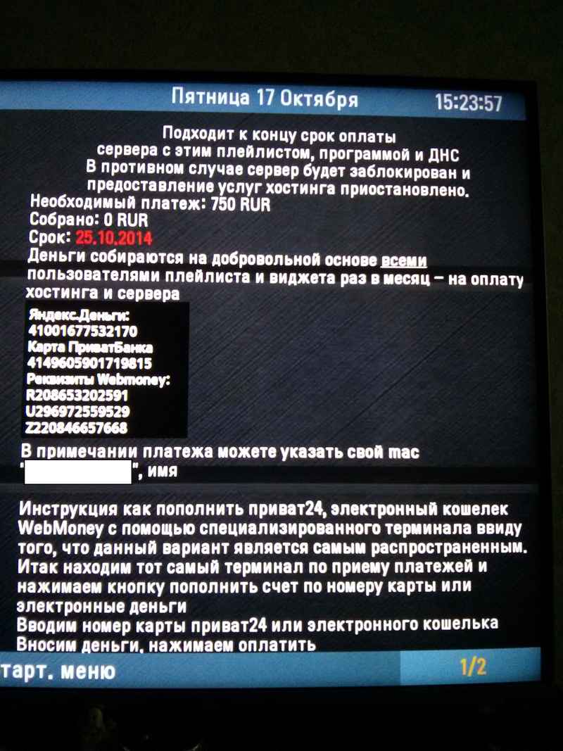 krioken писал(а):Сегодня зашел в forkplayer а там объява что надо 750 руб оплатить до 25 октября, иначе потом отключение от данного ресурса, так че он платный чтоли??