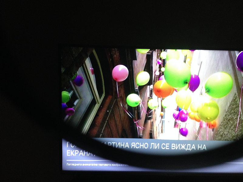 Обнаружил неприятное задвоение в левой части экрана, при просмотре напротив центра экрана на расстоянии 2,5 метра. При перемещении ниже или выше относительно начальной точки просмотра - задвоение перемещается в соседние области, но не проходит совсем. На тестовой картинке 3d в телевизоре задвоение заметней всего на яркой ленточке первого левого розового шарика.