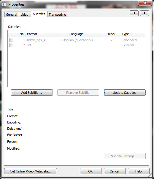 Включение и отключение субтитров при просмотре видео с USB