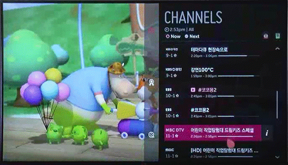 При выборе пункта "Каналы" открывается список всех каналов и текущих программ (следующих программ - при нажатии на "Следующий" или "Дальше").