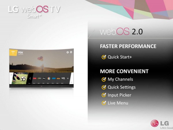 Платформа webOS, созданная «сделать телевизоры снова простыми», была рассчитана на снижение растущего недовольства потребителей из-за слишком сложного управления некоторыми Smart TV телевизорами. За счет трех основных функций – Простое подключение, Простое переключение и Простой поиск — webOS сделала управление современными ТВ-системами простым как никогда. Усилия производителя не остались незамеченными, что привело к продажам более 1 миллиона телевизоров в первые два месяца после появления этой платформы в начале этого года и к рекордному показателю продаж в 5 миллионов штук за восемь месяцев.