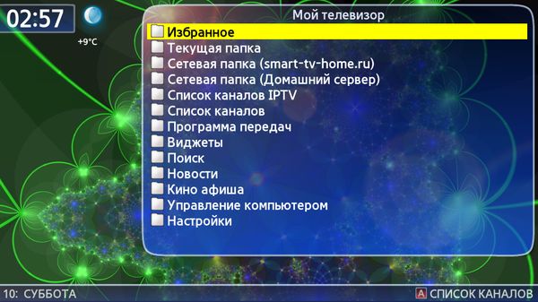 - раздел Избранное в котором запоминаются позиция воспроизведения любого файла, ссылки на папки, сайты и телеканалы,