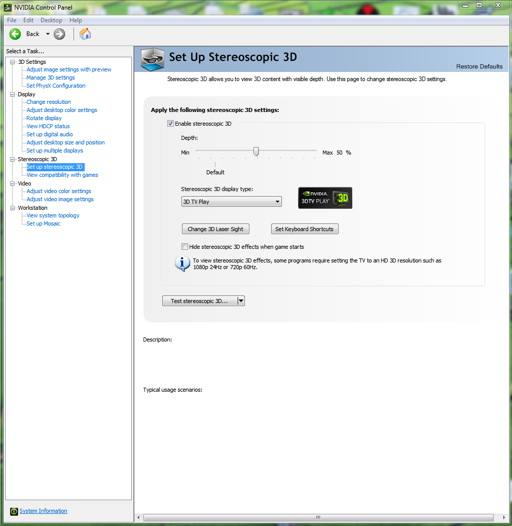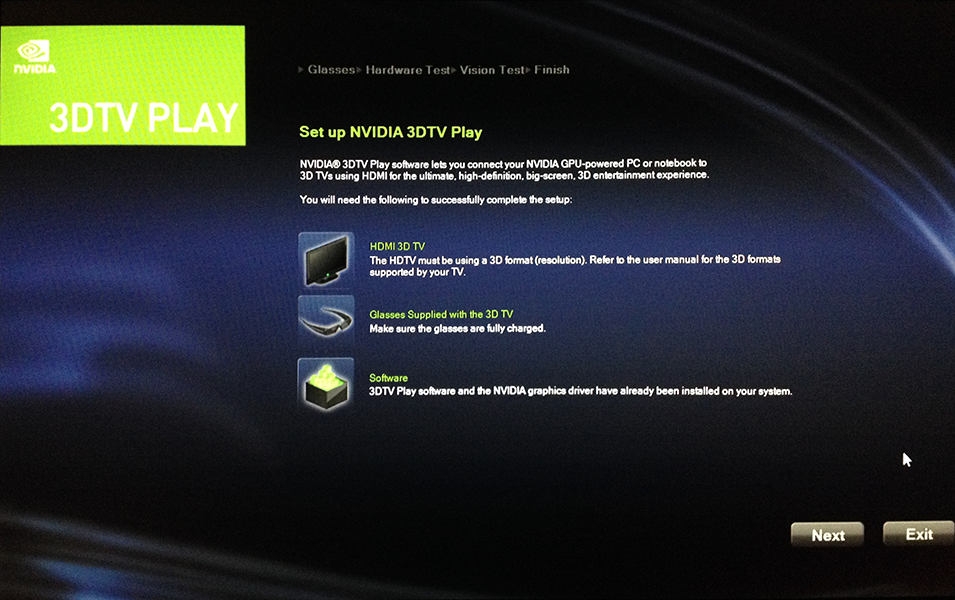Так это самое 3dtv play по идее как раз и предназначено для того, чтобы заставить видеокарту отдавать 3д сигнал по hdmi даже при отсутствии затворных очков, только вот для этого оно должно быть уверено, что тв его переварит. У них на сайте есть формочка, куда надо посылать файлики ответов для внесения тв в список поддерживаемого оборудования при очередном апдейте драйверов. Но мне этим заниматься лень, т.к. в игрушки играть на тв не планирую, а фильмы в 3DBD ISO если и буду с компа смотреть - то встроенного видео от intel для этого за глаза и за уши хватит.