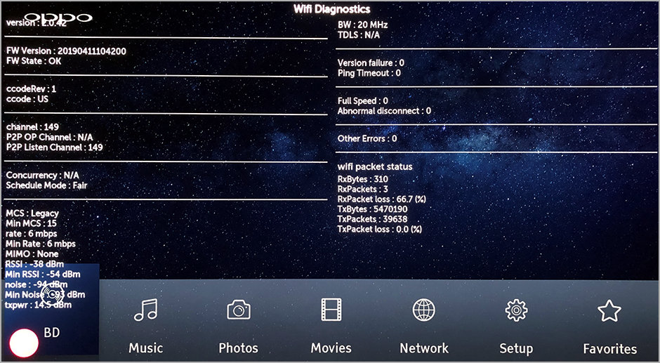 Подменю WiFi Diagnostics в меню Host Diagnostics на телевизоре LG OLED C9