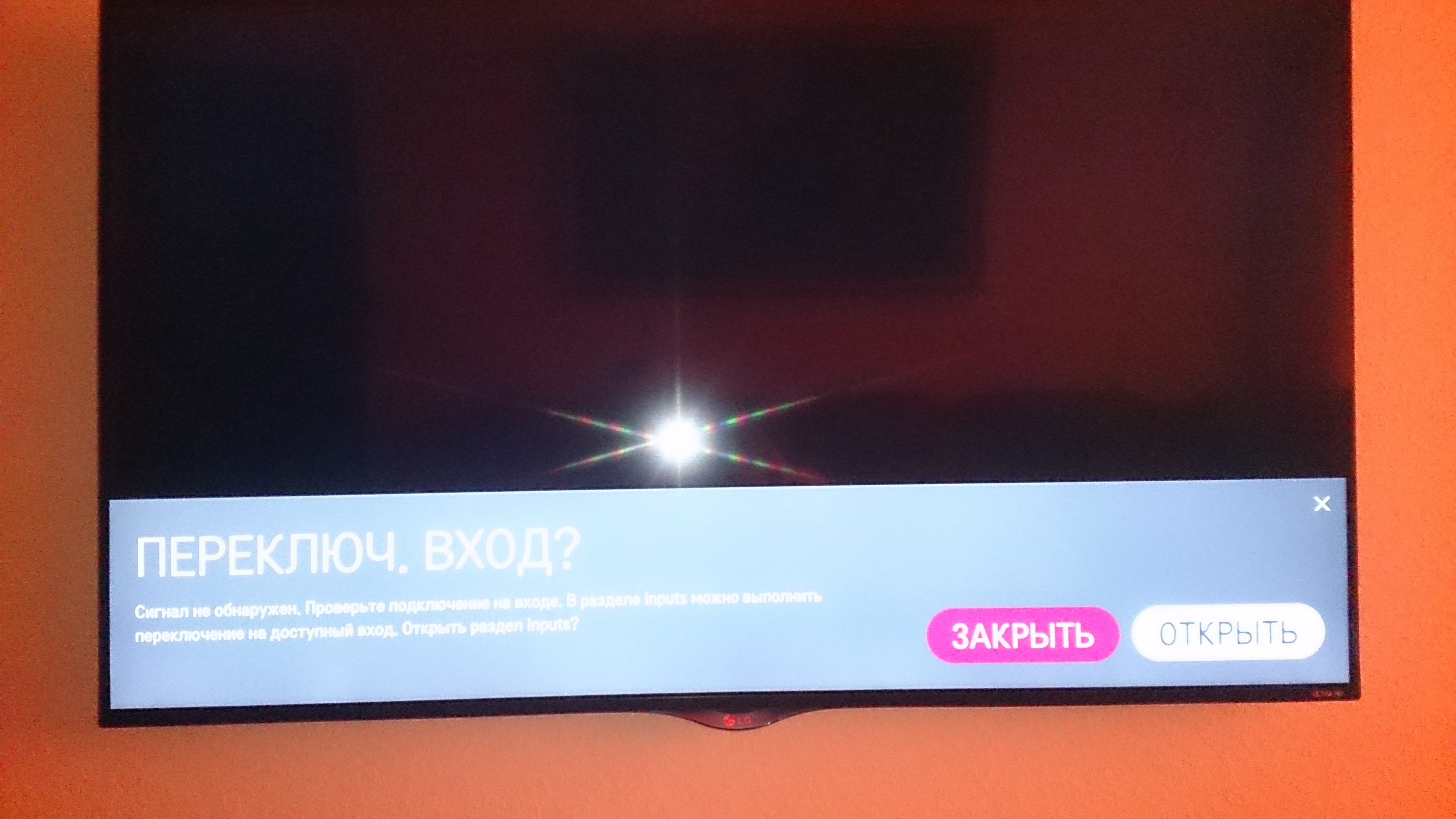 С номером версии ПО вы конечно напутали, такой версии еще совсем не выпускали для этих моделей. А вот это сообщение выводится тогда, когда нет сигнала с HDMI входа, по которому вы подключали телевизор к ноутбуку. Переключитесь на любой рабочий вход с нормальным сигналом, тогда не будет вылазить такое сообщение. Вероятно всего у вас остались какие-то данные по этому входу, удалите там их из настроек.