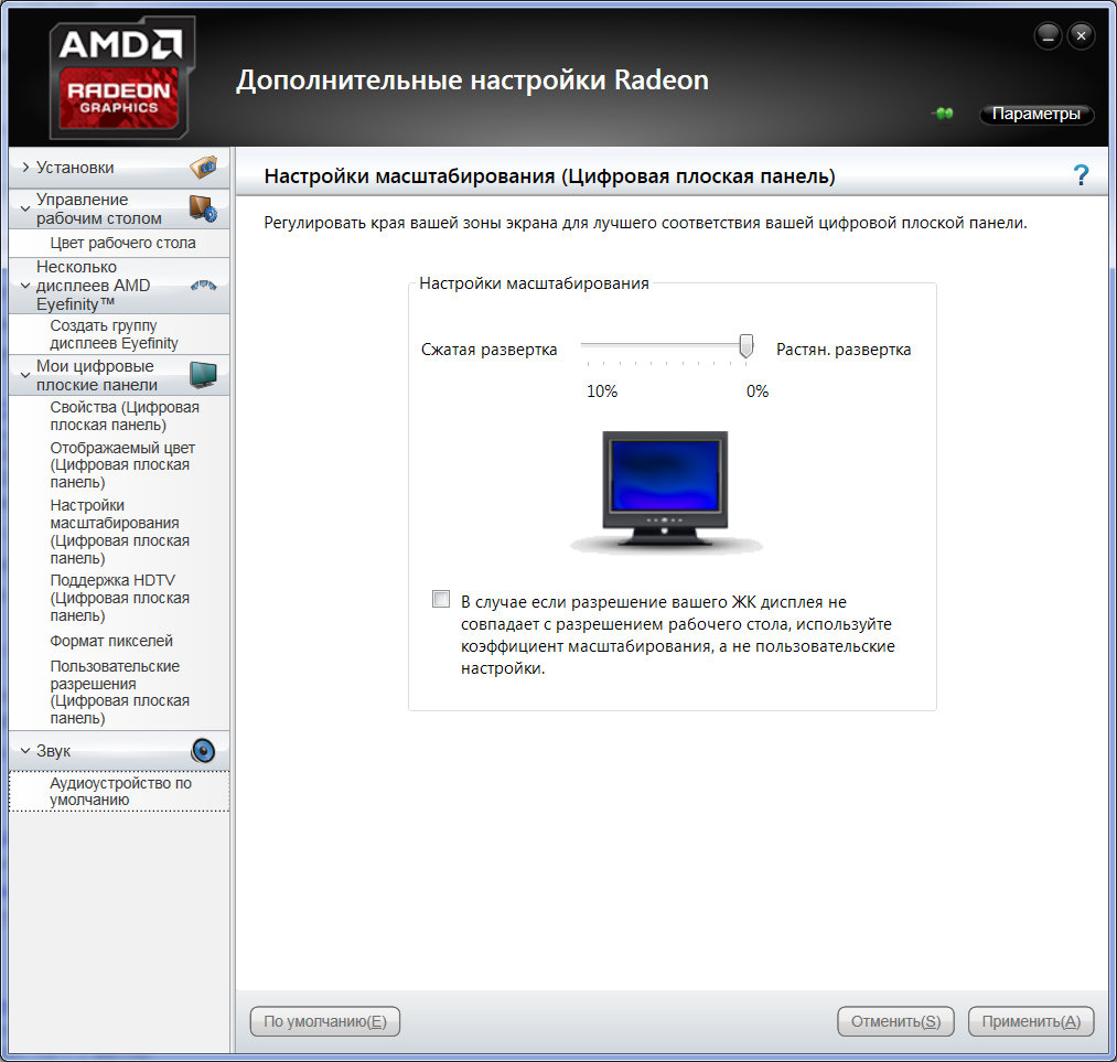 Если видеокарта AMD, нужно поставить ползунок масштабирования на 0%.