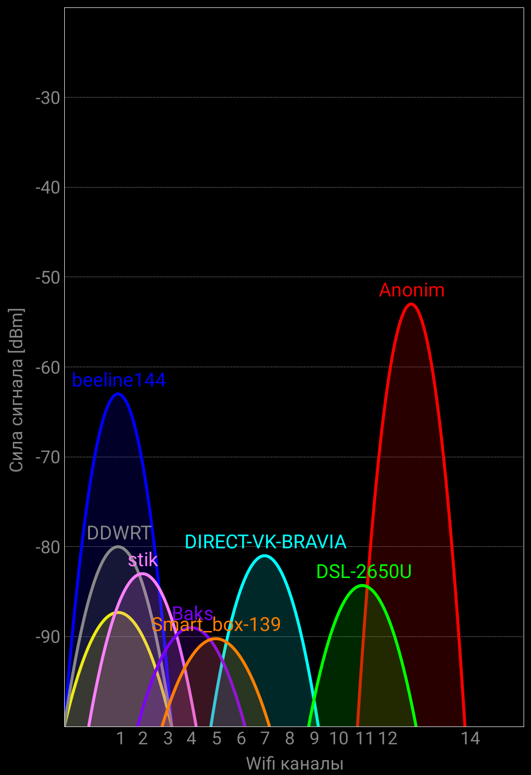 Проблем с роутером(ZyXEL Keenetic Giga II) не испытываю, т.к. в доме не единственное сопряженное с ним устройство. Сигнал стабильный во всех комнатах. В частности рядом с самим телевизором такой(моя сеть "Anonim"):