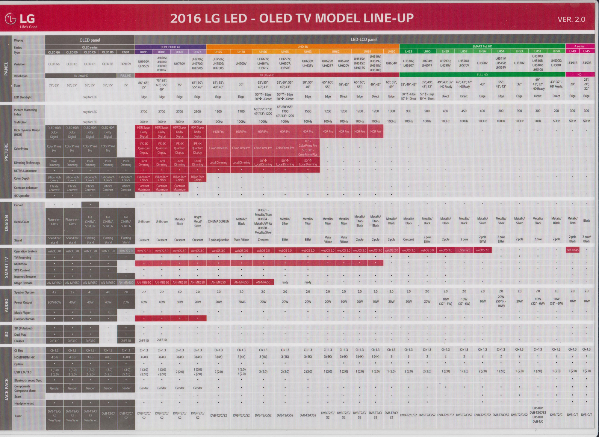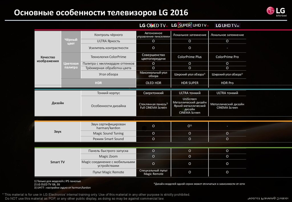 Сравнительные таблицы телевизоров LG, где наглядно можно посмотреть различия между моделями 2016 года: