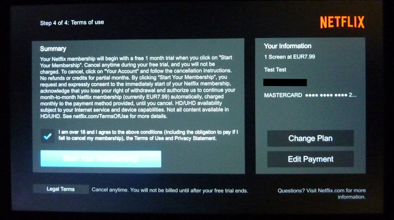 Последний шаг. Подтверждаем условия использования Netflix в России.