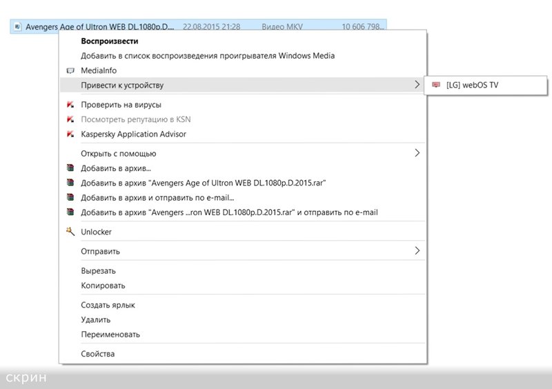 Может кто не знает, если в проводнике компа щелкнуть правой кнопкой по файлу, то можно запустить его через телек без всякого Smart Share, расшаривания файла и т.д. До win10 нельзя было запустить таким образом MKV, в десятке доступно и MKV.