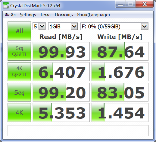 Test : 1024 MiB [F: 0.0% (0.0/58.8 GiB)] (x5) [Interval=5 sec]