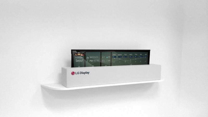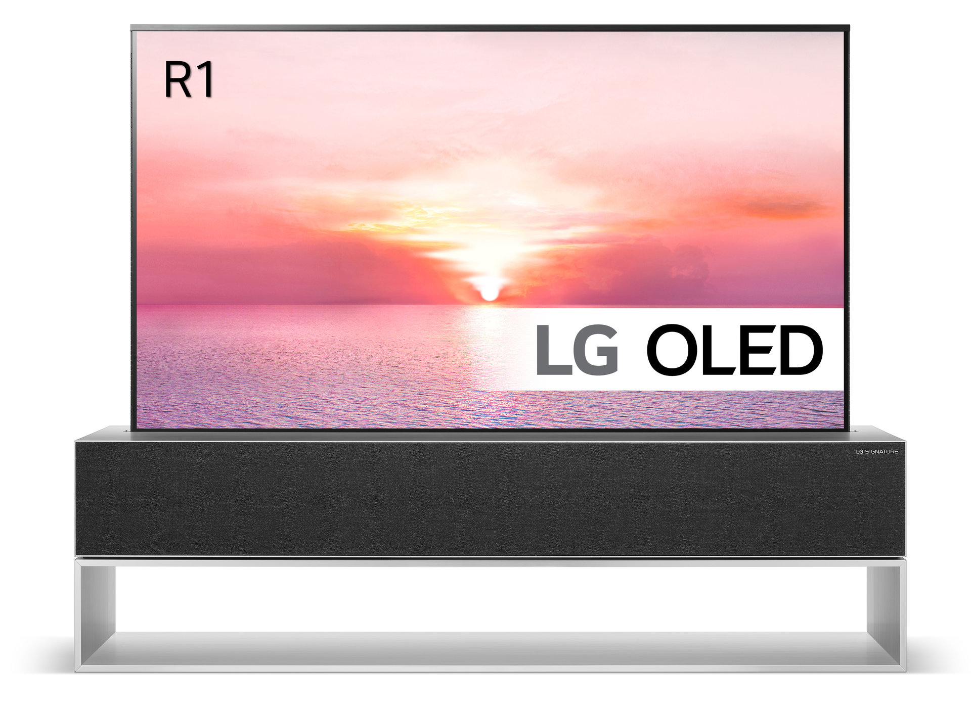Модель R1 относится к линейке OLED-телевизоров LG 2021 года и является первой моделью, которая имеет складную конструкцию. В спящем режиме телевизор представляет собой небольшую станцию, из которой выезжает экран по нажатию кнопки. Дисплей внутри этой коробки скручивается в рулон. Таким образом, телевизор можно поставить посреди комнаты, а в выключенном состоянии он выглядит как небольшая тумбочка. Если не нужен весь экран, то можно открыть только верхнюю часть дисплея, чтобы на ней смотреть время, погоду, управлять музыкой или "умным" домом.