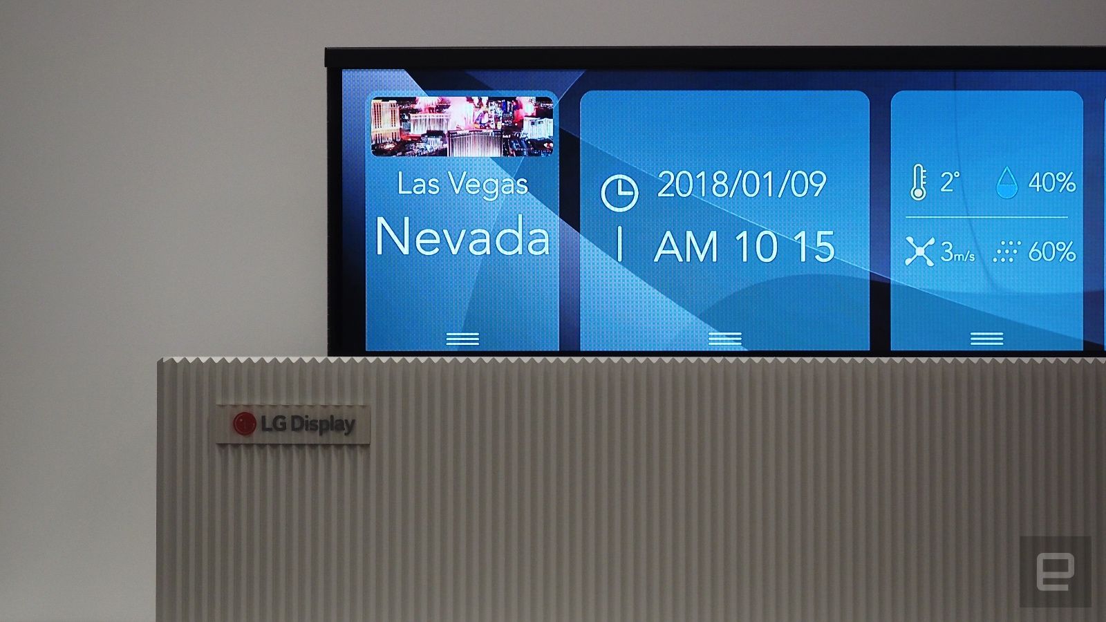 Телевизор может расширяться до своей полной 65-дюймовой формы (то, что LG называет Full View), отображать лишь небольшую часть экрана (режим Line View) и находится в положении Zero View (нулевой ракурс)