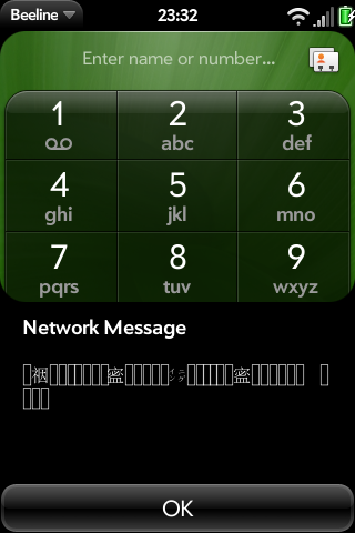 Мужики хелп! На Palm Pre (прошивка v.1.4.5) есть проблема: при ussd запросе *102# и подобных в ответ приходит нечитабельный текст (кодировка чтоли неправильная).