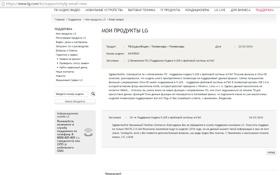 Пока есть поддержка только HDCP2.2 H.264 Возможно изменения будут в моделях 2016 года, но на данный момент такой информации к нам не поступало