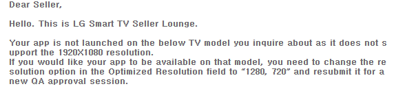 Получил ответ на попытку от LG QA на попутку запроса одобрения программы для модели ТВ и ... как то еще больше вопросов появилось