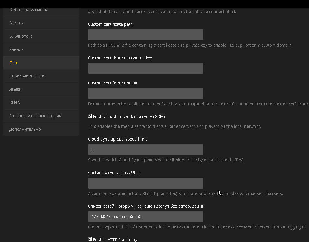 ВАЖНО: С изменениями безопасности в версии 1. 1. 0, если ваш Plex Media Server подписан в к сплетении. ТВ счет, то все приложения, которые вы используете также должны быть подписаны в. (.. Например MediaLink приложение от LG) Если вы используете старые приложения, которые не может проверить подлинность, вы можете добавить IP-адрес устройства к следующему расширенному предпочтения: Настройки> Сервер> Сеть> Список IP-адресов и сетей, которые разрешены без AUTH. (Мы настоятельно рекомендуем приложения должны быть подписаны в для повышения безопасности и расширения функциональных возможностей.)