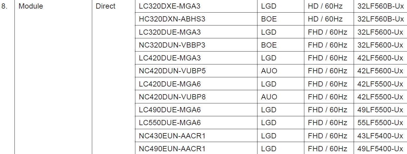 Спецификации матриц модификаций 32LH530V, любезно предоставленные сотрудником оф. сервиса LG: