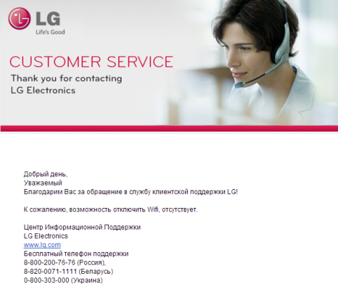 Не знаю куда написать, оставлю здесь. Обратился в тех. поддержку LG. Вот ответ