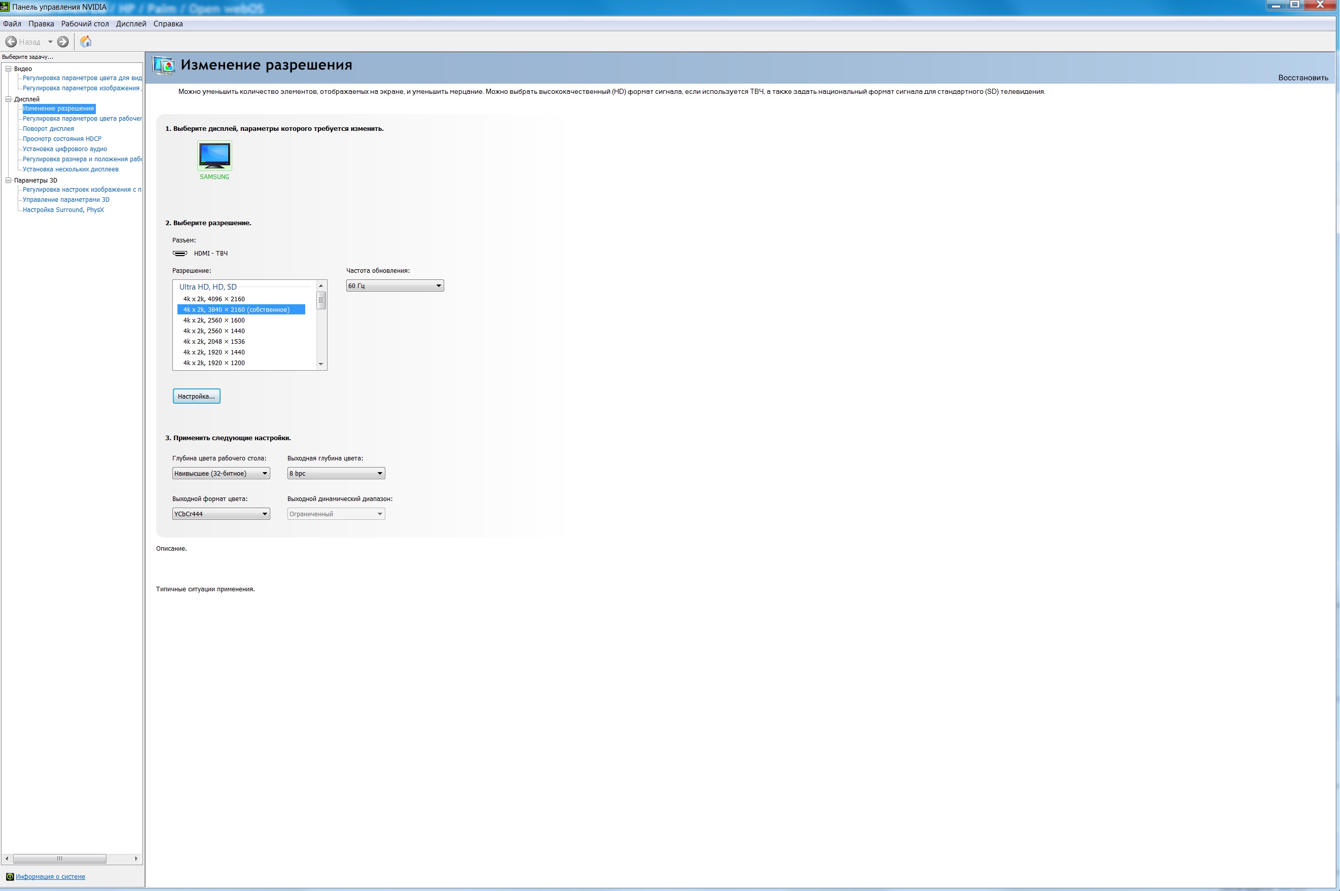 Тем не менее на моей не свежей видяхе с пропатченными дровами HD6870 по спецификации с HDMI 1.4a и с кабелем HDMI 2.0 3840*2160 завелся только на частотах 24 и 25гц, пробовал только боковой HDMI номер 1 вход, ulra deep colour вкл.