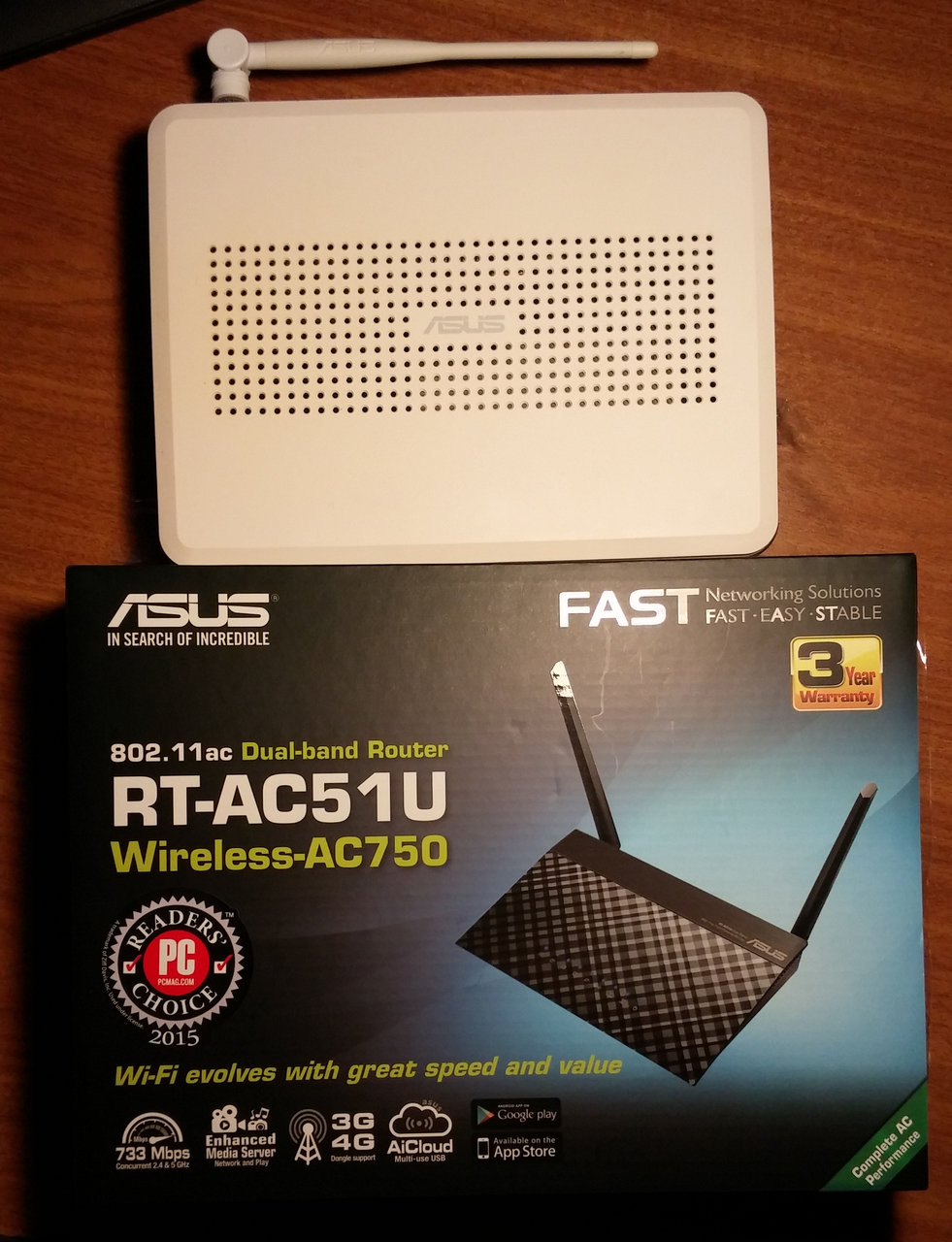 Взял "погонять" эту модель роутера ASUS RT-AC51U. Из положительных моментов в сравнении с моим текущим ASUS WL-500gp - есть встроенные полезные приложения типа DLNA-сервера и торрент-клиента, поддержка работы с USB устройствами (флешками, модемами), более современный интерфейс управления роутером с возросшим функционалом, 2 рабочих частоты - 2,4 ГГц и 5 ГГц. Жирный минус - сеть 5 ГГц через две бетонные стены практически не пробивает. Помучался с ней пару дней и перешел обратно на 2,4 ГГц, тут все отлично. Проверить скорость передачи в стандарте 801.1ac, которая в теории должна была вырасти, не смог (см.выше про бетонные стены), да и мой ТВ UB950V его не поддерживает. Телефон вблизи от роутера показывает подключение 200 Мбит/сек на частоте 5 ГЦ, что конечно приятно