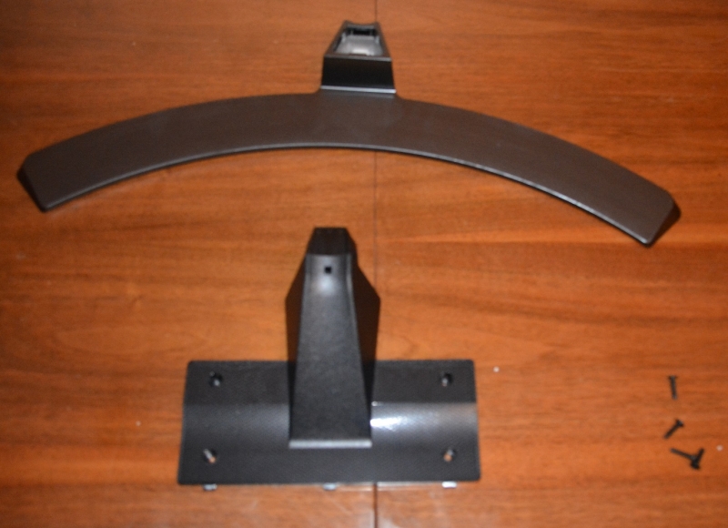 Немного удивил способ крепления ноги на телевизоре. Под ножку имеется специальное углубление в корпусе, благодаря которому ножка не выпирает из задней плоскости корпуса и находится с ним в один уровень. Изначально это углубление закрыто крышкой на защелках. Если телевизор вешается на стену - место крепления ножки можно снова закрыть этой же крышкой. Решение удачное и продуманное. Так вот телевизор смотрится с ножкой: